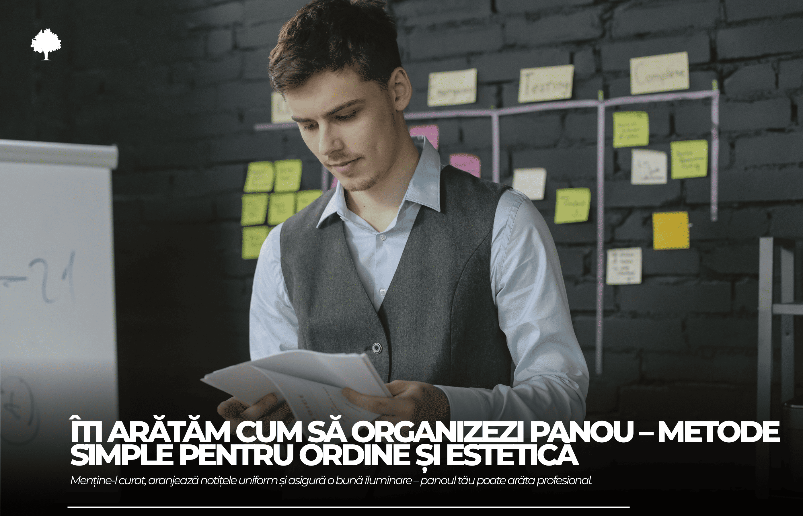 Acum că bilețelele sunt sortate, este momentul să oferi tablei o nouă formă — una care nu doar arată ordonat, ci și funcționează eficient. Scopul este să creezi o organizare care te ajută să găsești rapid ce ai nevoie și să actualizezi conținutul ușor, fără să fie nevoie de „curățenie generală” la fiecare două săptămâni.