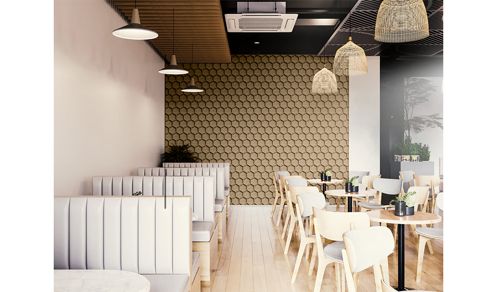 Modelul Honeycomb seamănă cu un fagure de albine — are un aspect geometric și tridimensional. După ce panourile sunt montate, peretele capătă o structură 3D modernă în formă de fagure. Lumina și umbrele accentuează acest efect, oferind dinamism și profunzime în funcție de unghi și iluminare.